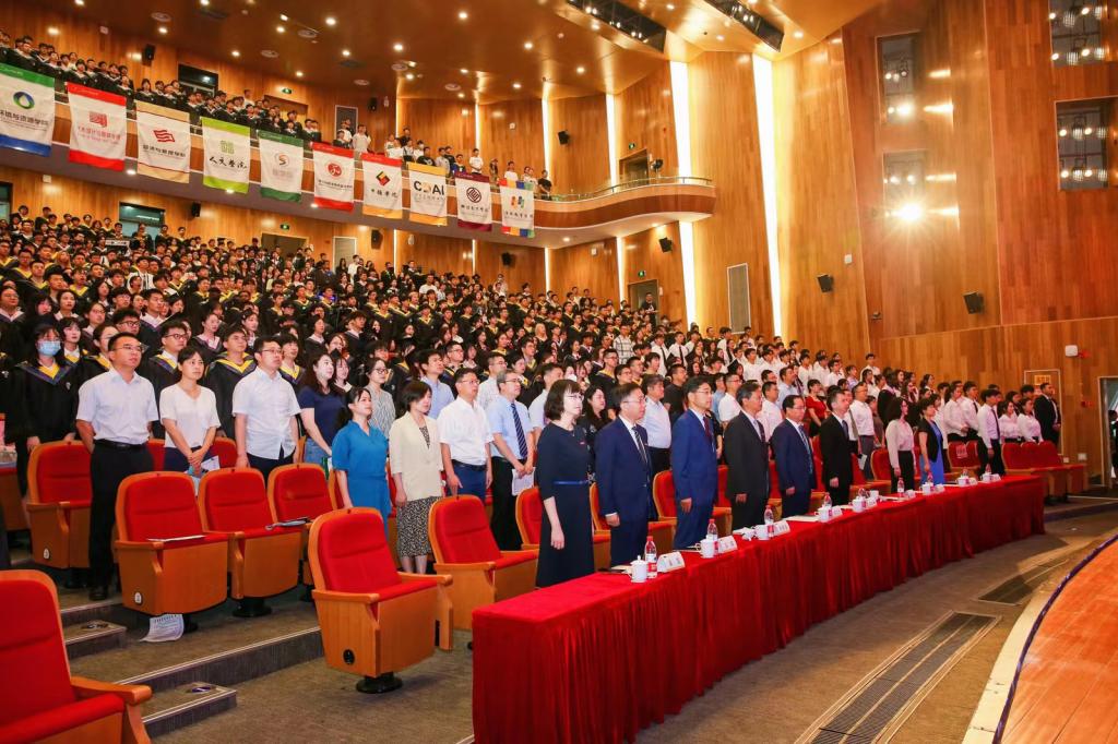 校党委副书记符宁平宣读省级优秀毕业生表彰文件,希望广大毕业生以优秀为榜样,砥砺奋进。副校长单胜道宣读卓越学子奖学金表彰文件。