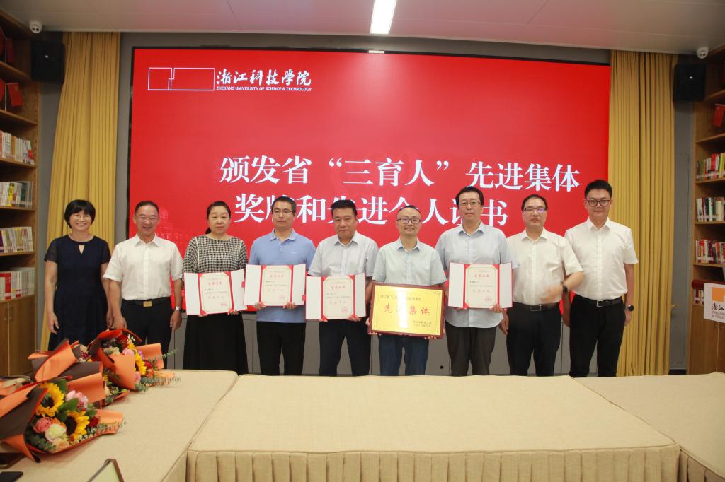 王玉庆为获得2023年浙江省 “三育人”岗位建功活动先进集体、先进个人等颁发证书,并与教师代表座谈交流。