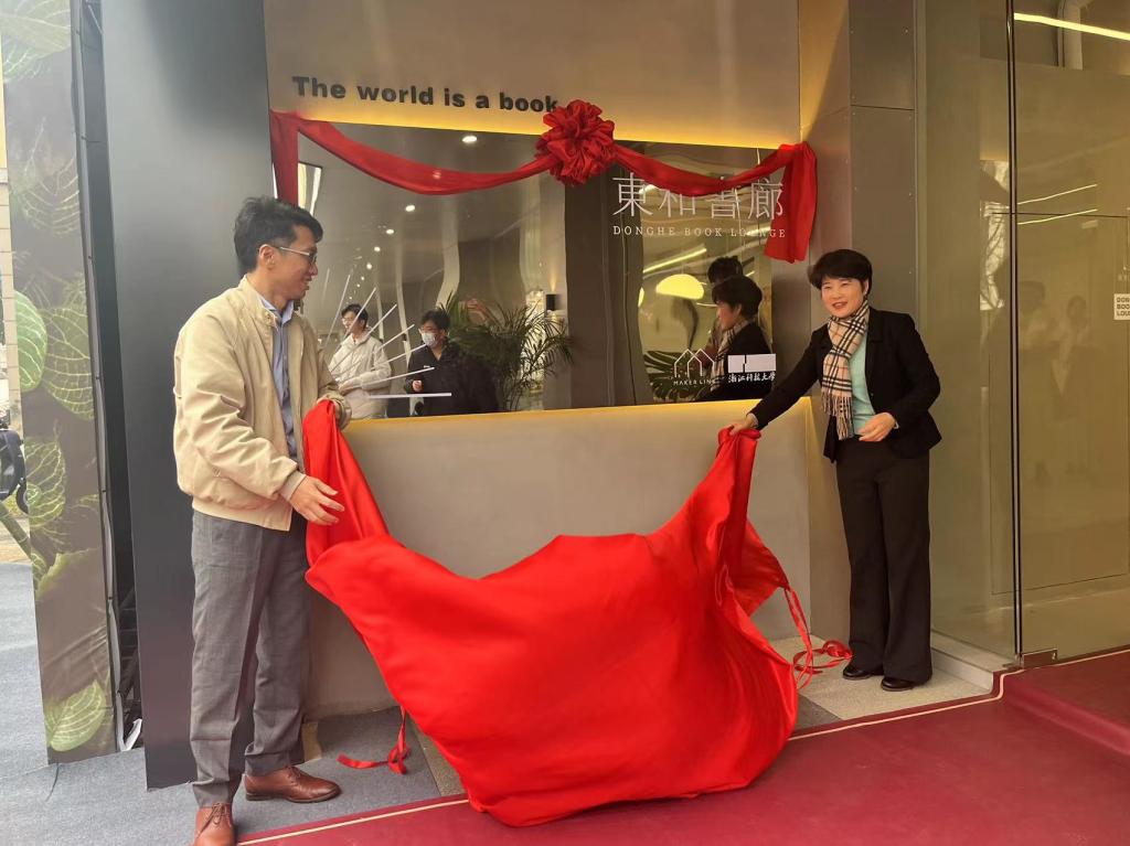 “十年树木、百年树人”,12月29日米乐官网特色文化区“东和书廊”正式投入使用。副校长陈平、云创蔚来产业集团总裁林志敏等出席揭牌仪式。