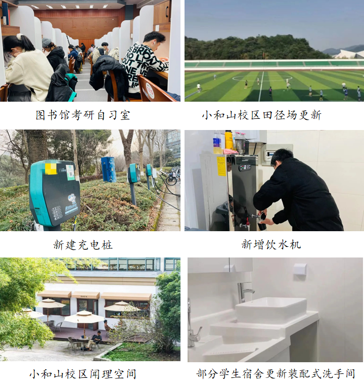学校坚持以师生为中心的发展思想,在践行党的群众路线中解决师生急难愁盼问题,每年开展服务师生办实事活动,推动师生共享发展成果。2023年,学校推动实施“访企拓岗”促高质量就业,公寓区、图书馆等环境空间改造,校园充电桩增设,公共区域饮水机更新增加,安吉校区学生公寓走廊封窗等一批办实事项目,受到了广大师生的广泛好评。(详情点击《推进高质量就业、提升育人环境、信息化助力高效管理服务……2023这项工作请阅卷》) (资产公司 周亚斐)