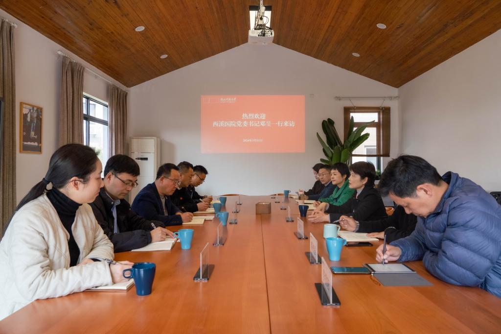 陈平对西溪医院一行来访,调研深化医校共建合作表示热烈欢迎。她简要介绍学校发展情况,对近年来西溪医院在师生健康教育方面给予学校的大力支持表示感谢。陈平希望双方进一步深化医校共建成果,促进资源共享、优势互补,共同打造流程化、规范化高校急救体系,更好服务健康校园建设。