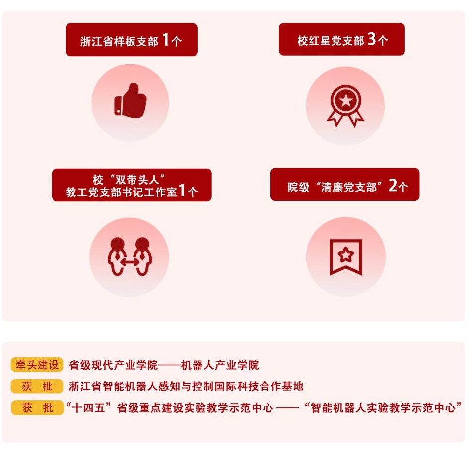 学院不断提高科学研究与社会服务的层次与广度,聚焦机器人、智能感知、自动化、智能控制、电机驱动等研究方向,承担国家自然科学基金面上项目、浙江省重点研发项目,以及重大横向企业委托技术开发类项目。学院牵头建设省级现代产业学院——机器人产业学院,创新国际化应用创新型人才培养模式,探索现代产业学院运行新机制,打造机器人领域集产、学、研、转、创于一体的现代产业学院标杆;依托省级教学科研平台,做实高层次应用型人才培养、科学研究、社会服务。