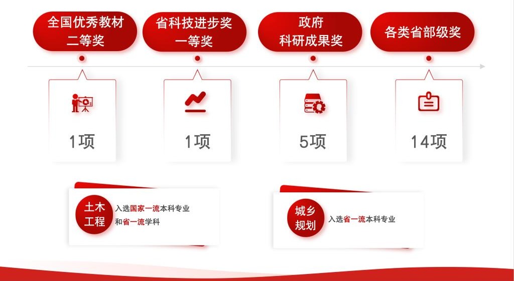 学院以高质量党建引领高质量发展,推动党建与业务工作深度融合。坚持目标导向,实施“红融智治”工程,以党建工作为统领,以强化学科特色为导向,以加强学科平台建设为基础,以学术创新人才团队建设为抓手,以提升科研水平为关键,攻坚克难,屡创佳绩。近五年来,获全国优秀教材二等奖1项,政府科研成果奖5项,其中主持完成省科技进步奖一等奖1项,其他省部级奖14项;土木工程入选国家一流本科专业和省一流学科,城乡规划入选省一流本科专业,新增城乡规划和土木水利2个硕士点;新增省国际联合实验室1个,省级国际科技合作基地1个;新增国家基金项目16项,其中面上项目5项;聘请何满潮院士为学院名誉院长,学院多次主办国际性专业学术会议,进一步营造崇尚科学的学术氛围。