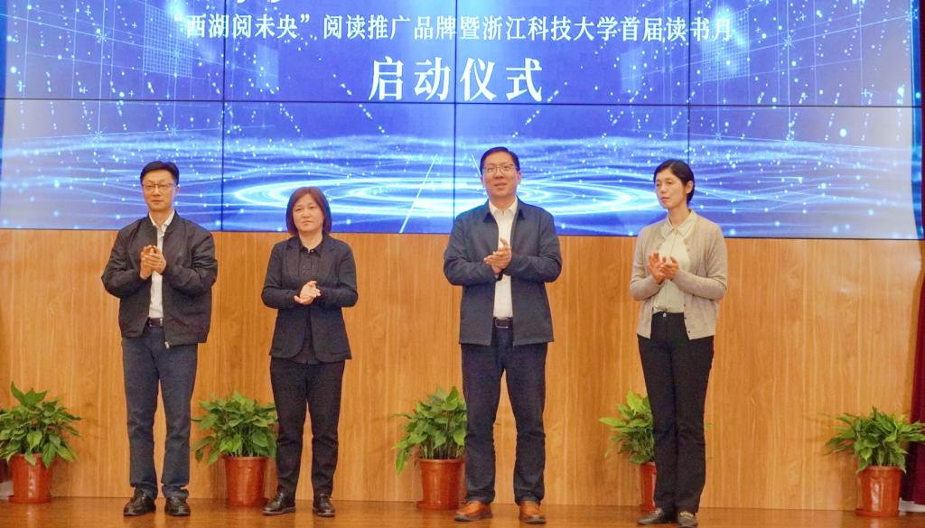启动仪式上,浙科大10位“阅读达人”、5名优秀志愿者,西湖区图书馆5名优秀志愿者和6个最美阅读空间受表彰。来自竞舟小学的肖誉萱同学朗诵《中国话》,米乐官网留学生乌拉、安毅然等9位同学朗诵《诗词中的西湖》,“小Q悦读”4位同学朗诵《书香少年》。