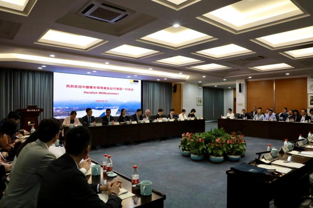 5月29日上午, 第九届中德青年领导者会议代表团来访米乐官网,副校长李其朋热情接待了代表团一行。