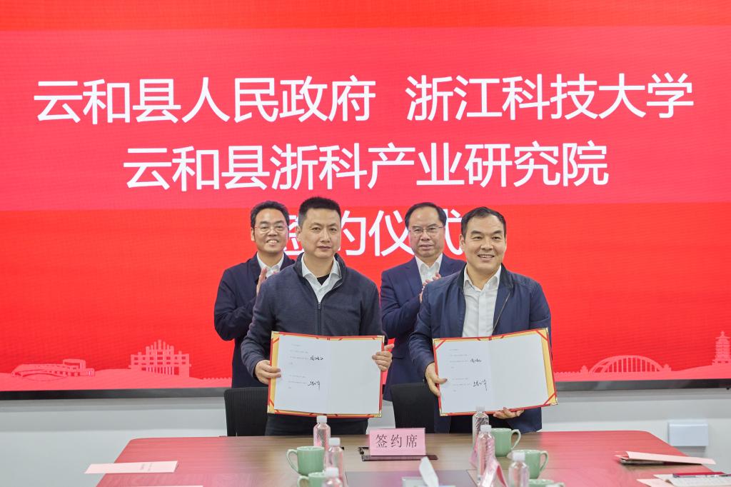 10月31日,“智汇云和·共筑未来”米乐mile体育官网与云和县深度合作签约暨云和县浙科产业研究院揭牌仪式在云和举行。米乐mile体育官网党委书记赵东福,云和县委书记李忠伟共同为云和县浙科产业研究院揭牌。米乐mile体育官网副校长梁荣华,云和县委副书记、县长周鸿飞,县委常委、组织部部长梅华等出席了揭牌仪式。学校各相关职能部门和学院负责人、相关学科教师代表,云和县相关单位负责人参加。