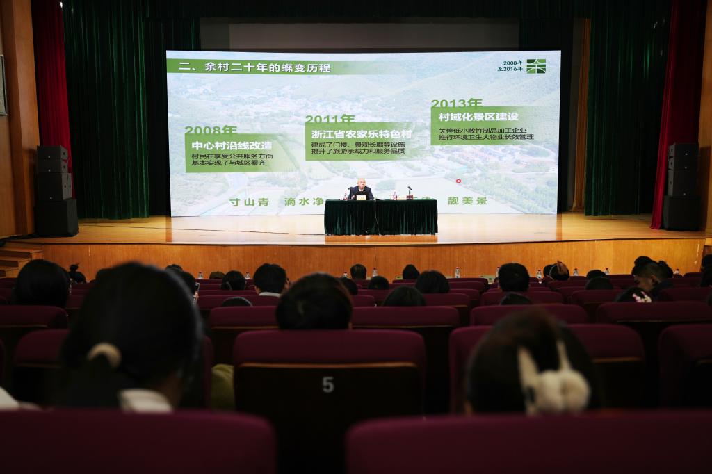 12月6日,全国人大代表、浙江省湖州市安吉县余村村党支部书记汪玉成受邀来校作专题宣讲,与师生分享了“千万工程”的余村实践。安吉校区相关负责人、全体党员及师生代表共700余人参加。