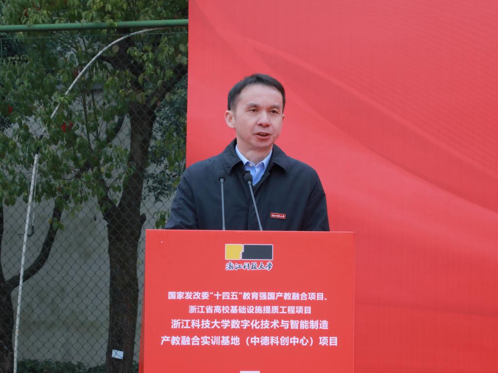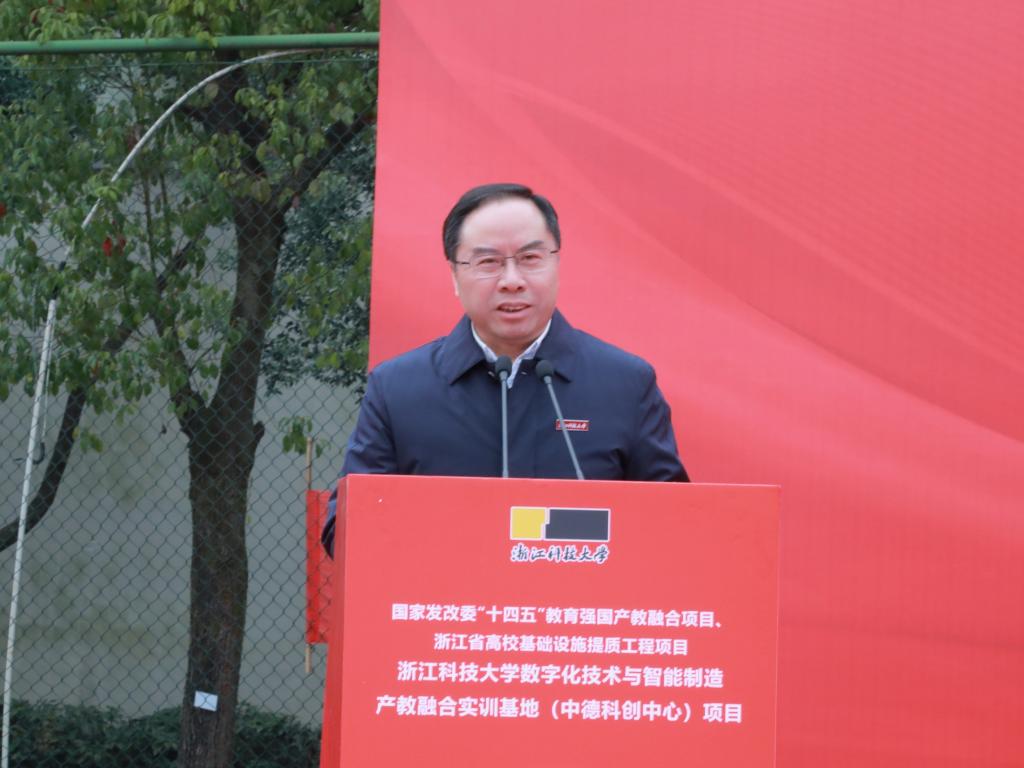 陈建孟在致辞中指出,中德科创中心项目将立足我省数字化技术和高端智能制造产业发展前沿,聚焦“数字化技术与智能制造”关键领域,依托学校国际化办学优势,构建打造中德合作产学研一体应用研发基地,深化产教融合、国际合作、校企合作,为浙江现代产业发展提供技术和人才支撑,助力浙江全球先进制造业基地建设。他希望,各方共同努力,将中德科创中心项目打造成为支撑学校高水平建设的精品工程,成为全省基础设施提质工程的示范项目。