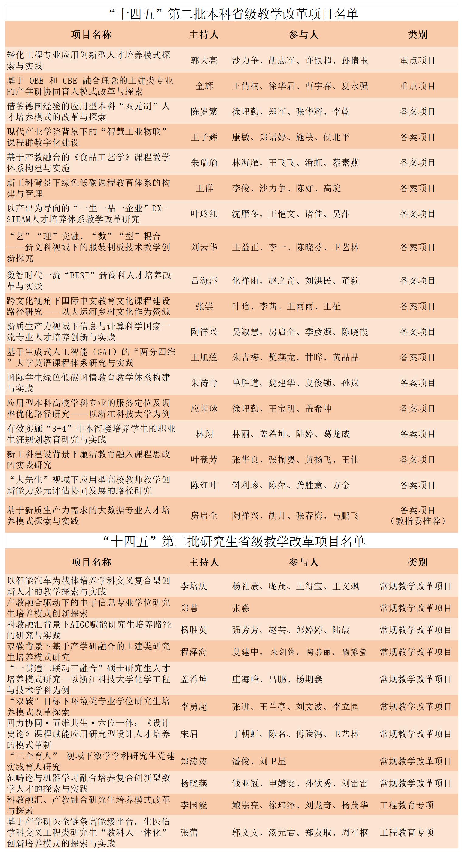 近日,浙江省教育厅办公室发布《关于公布“十四五”第二批本科和研究生省级教学改革项目的通知》,米乐官网共29个项目获得立项,其中18个本科生教学改革项目获得立项,11个研究生教学改革项目获得立项。