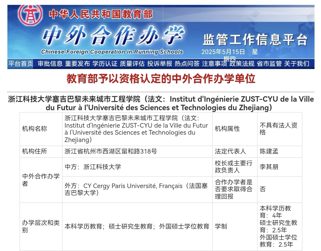 近日,教育部经评审批准了新一批中外合作办学机构和办学项目,教育部中外合作办学监管工作信息平台公布了相关信息。米乐官网与法国塞吉巴黎大学合作设立的米乐mile体育官网塞吉巴黎未来城市工程学院正式获批,这是米乐官网第二个获得教育部批准的非独立设置中外合作办学机构,是学校在国际化办学领域的重要成果。