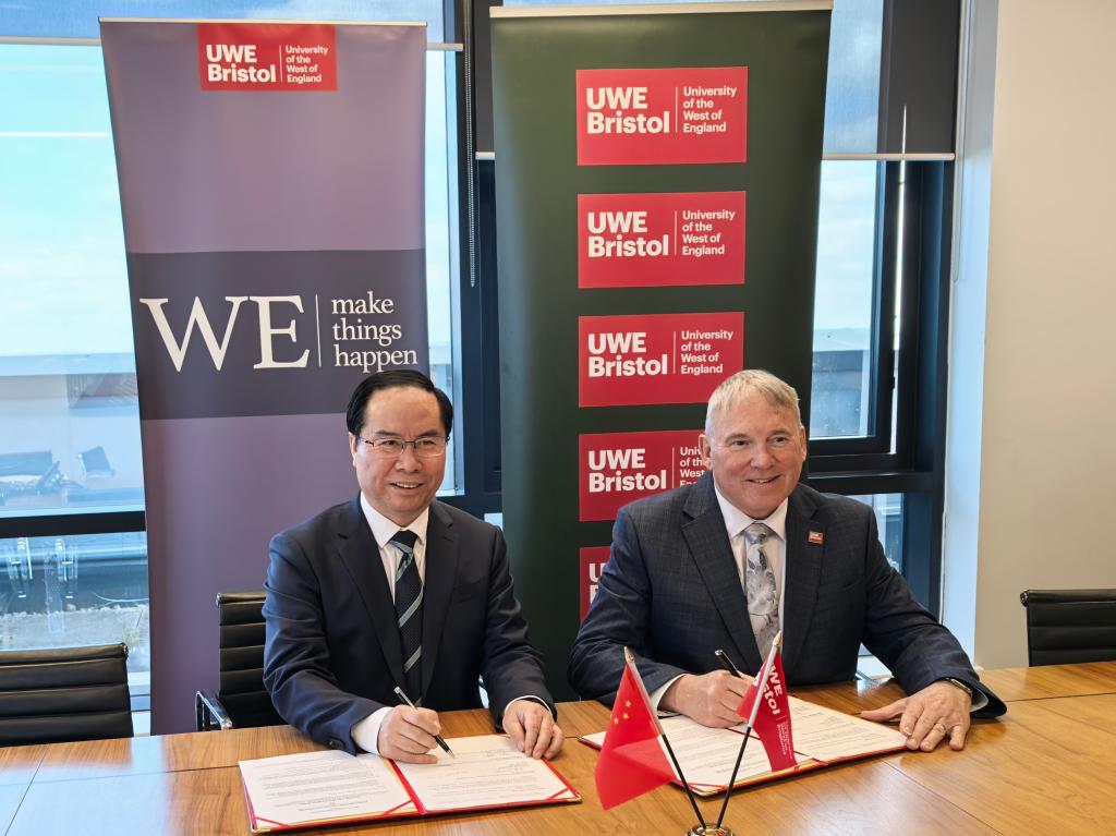 在西英格兰大学,赵东福一行与该校校长史蒂夫·韦斯特(Steve West)等会谈交流。史蒂夫介绍了西英格兰大学办学历史、国际合作战略、机器人实验室等情况。双方就工程、经济管理、艺术等多学科领域的合作充分交换意见,并签署合作备忘录。代表团一行考察该校布里斯托机器人实验室,这是全欧洲第二、英国第一的人工智能和机器人实验室。