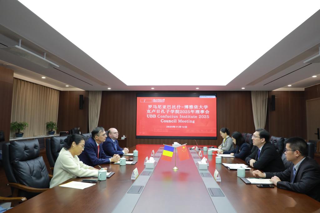 会谈后,李其朋主持召开克卢日孔子学院2025年度理事会。巴比什-博雅依大学校长阿德里安·彼得鲁塞尔(Prof. Dr. Adrian Petrusel)、巴比什-博雅依大学议会主席伊安·斯特雷特亚努(Prof. Dr. Ioan Streteanu)出席。双方就整合优化两校资源等内容交换了意见,就孔子学院未来发展和两校多领域深层次的交流进行了深入交流与探讨。
