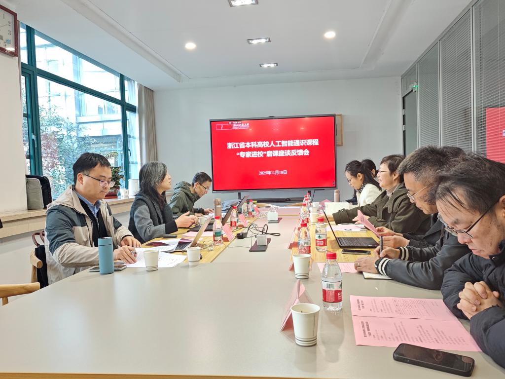 11月18日,浙江省本科高校人工智能通识课程“专家进校”磨课工作组一行来米乐官网开展磨课指导工作。专家组由浙江工业大学数学学院党委书记江颉教授、浙江理工大学省一流人工智能通识课程负责人沈炜教授、浙江大学人工智能系副主任况琨副教授组成。教务处、监评教发中心及相关学院负责人、本科教学督导代表、人工智能通识课程团队教师代表共同参加本次磨课活动。