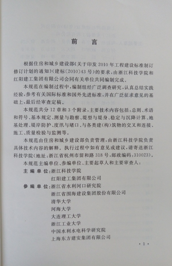 《规范》共分12章和3个附录,主要技术内容包括:总则、术语和符号、基本规定、测量与勘察、堤形与堤身、稳定与沉降计算、地基处理、堤岸防护、度汛与渡口、与各类建(构)筑物的交叉和链接、施工、质量检验与监测等。