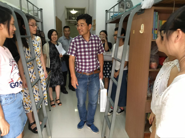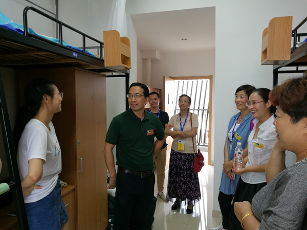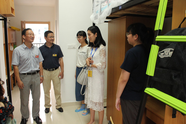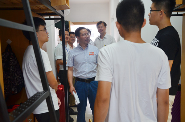 校领导走访学生宿舍看望新生和家长