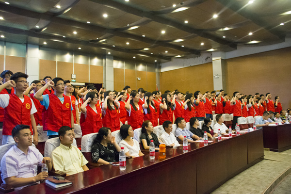 校G20峰会志愿者工作领导小组成员、各二级学院党委副书记、分团委书记、G20峰会志愿者以及暑期社会实践团队代表共238人参加了仪式。