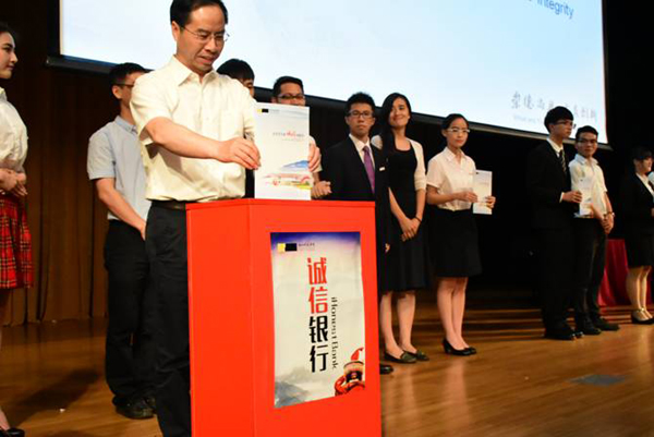 2015-2016学年,安吉校区先后开展了开展诚信主题教育班会、“诚信铸金”演讲比赛、诚信倡议活动、“诚信在我心中”作品比赛、“名人名家聊诚信”系列讲座等诚信教育活动,将“诚信”二字贯彻落实到学生的学习生活中。