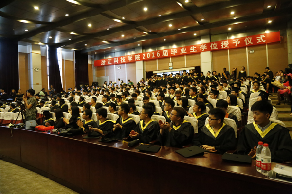 6月15日,2016届毕业生学位授予仪式举行。校党委书记王建华教授、校长叶高翔教授与毕业生合影留念。毕业生从校领导及校学位委员会成员手中领取自己的学位证书。