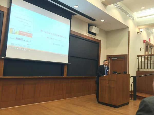图1:王建华在普林斯顿大学“第二十四届国际对外汉语教学研讨会”上主题发言