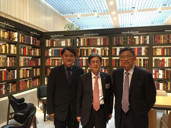图5:与韩国延世大学副校长李载用、中国研究院院长金铉哲交流