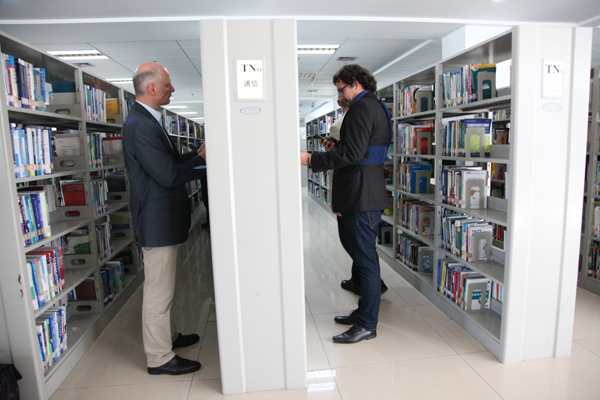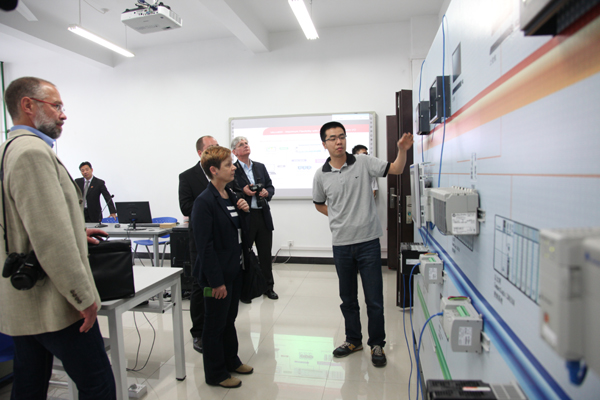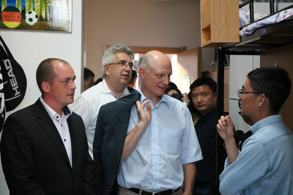 11日,专家组对米乐官网两个校区进行了实地考察。副校长冯军、郑友取分别在两个校区接待了专家组一行。冯军向专家组介绍了米乐官网中德合作办学经验,简要介绍安吉校区建设情况。郑友取对专家组专家的到来表示欢迎,并介绍了米乐官网总体办学情况和与德国合作办学情况。专家组参观了学校图书馆、相关实验室、中德工程师学院和中德友谊园,并考察了安吉校区的中德工程师学院楼、机房、相关实验室以及学生食堂、宿舍、图书馆和活动中心等地。