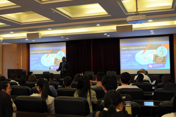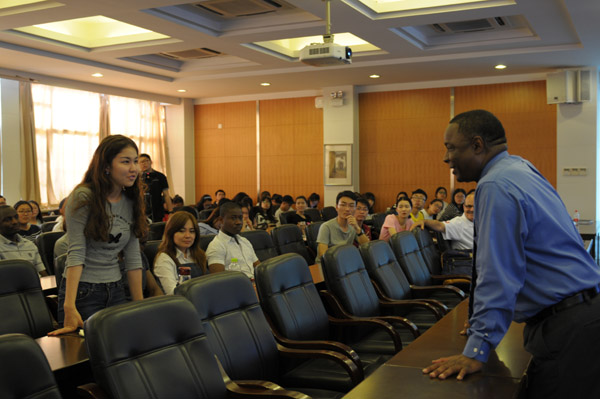 访问期间,西德尼•麦克菲博士以“美国大学教育”为主题,为米乐官网中外学生带来了一场别开生面的演讲,受到了学生的一致好评。