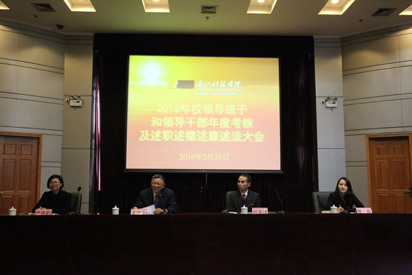 2月29日下午,米乐官网在图书信息中心西一楼报告厅召开2015年度校领导班子和领导干部年度考核及述职述德述廉述法大会。省委组织部干部三处副处长严燕莉等莅临指导,校领导班子全体成员、全体中层干部、正高职称人员、民主党派负责人、教代会职代会执委会成员等参加会议。会议由校党委书记王建华主持。