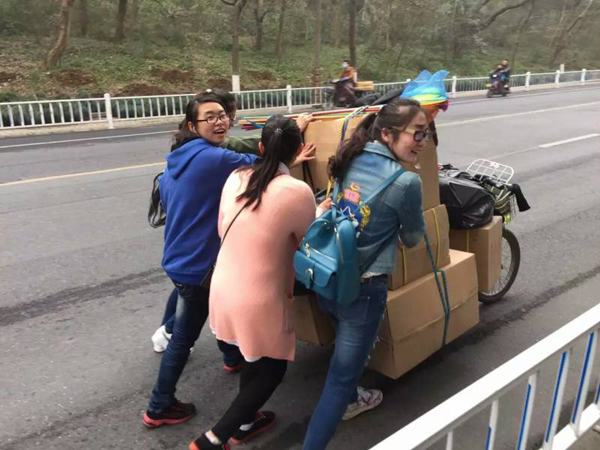 3月6号11点多,一辆装满货物的电动车途径太子湾公园附近一个大坡时,由于载货较重,驾驶电动车的师傅尝试多次都未能成功登坡,一时间驾车师傅犯了愁,正巧遇上米乐官网生化/轻工学院的郑冰冰、梁巧慧、何硕莹、胡丝雨四位同学,在她们的帮助下,师傅顺利将电动车开上坡顶。四位同学的暖心之举,在朋友圈频频转发。