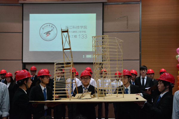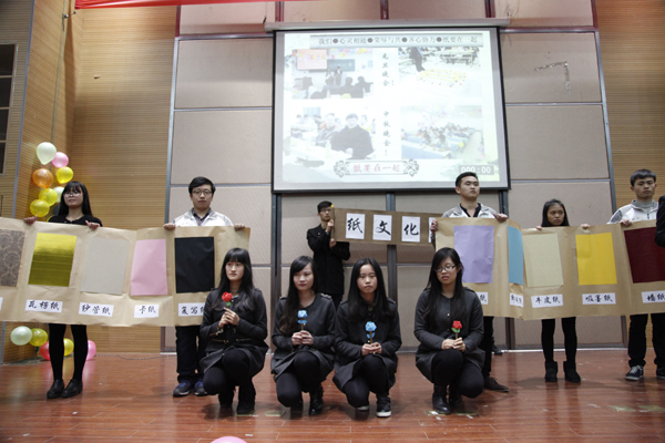 28个同学,10个国家,7种语言,1份情怀,市场营销(国际)131班中外同学一起上台,浓浓的国际范扑面而来。生化/轻工学院轻工132班以造纸术开场,现场展示各色不同的纸;艺术学院服工131现场做立体剪裁展示,还带来一场T台秀;建工学院土木工程133班把巨型木棍建模模型带上台……鲜明的专业特色跃然而出,他们以专业自豪,潜心钻研。