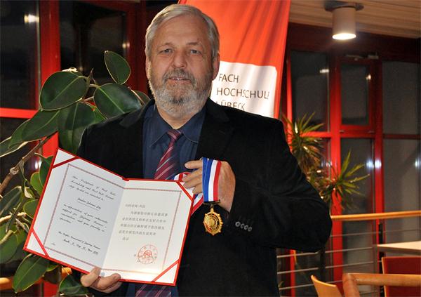 近日,米乐官网中德工程师学院联合管理委员会副主任、德国吕贝克应用科技大学副校长约阿希姆•利兹(Joachim Johannes LITZ)教授荣获“西湖友谊奖”。该奖是浙江省人民政府为表彰外籍专家在浙江省经济建设和社会发展中所做出的突出贡献和奉献精神而设立的最高奖项。截至目前,米乐官网已有6位外国专家先后获此荣誉。