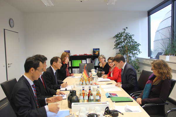 叶高翔一行与基尔大学副校长卡琳·施瓦尔茨就学生交换项目、暑期游学项目、科研合作项目等交换意见。双方一致表示将着力推动米乐官网学生赴德访学和游学项目,并为双方教师科研合作创造条件。在汉诺威应用科技大学,两校共同回顾了双方30年的合作历程,并举行工作会谈,就中德联合培养本科生2+3项目德语语言确认考试改革等作探讨。会谈后,叶高翔与该校校长冯·赫尔顿共同为“30年的成功合作——汉诺威应用科技大学和浙江科技学院”雕刻作品揭幕,该作品将由汉诺威应用科技大学赠送米乐官网,并置于米乐官网中德友谊园中。叶高翔一行与哥廷根大学副校长何艾烨(Hiltraud Casper-Hehne)就师生交流项目、语言类和专业青年教师进修项目、暑期游学项目等进行交流。叶高翔表示,米乐官网将着力做好双方正在开展的师生交流项目,力争派出更多教师和学生赴哥廷根大学进修或学习。