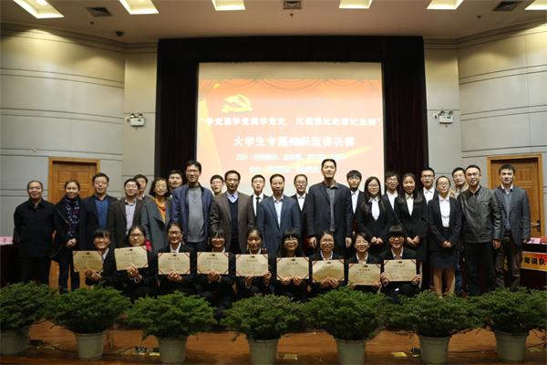 竞赛自10月底启动以来,吸引来自两个校区的50支队伍参与。经过初赛、半决赛的激烈角逐,生化/轻工学院“先锋队”、经管学院“少年说队”和“勇往直前队”、外语/中德学院“‘四有’青年队”和“星火燎原队”以及电气学院“梦之队”等6支代表队脱颖而出,晋级决赛。决赛紧紧围绕党章党规党史主题,分必答题、抢答题、风险题及时政评论题四个环节进行,参赛学生在比赛中展示了较扎实的政治理论素养和良好的精神风貌,最终,生化/轻工学院“先锋队”获第一名。