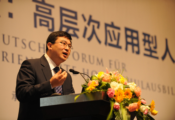 10月26日至30日,“中德论坛:高层次应用型人才培养(CDAH)”第五届论坛大会在宁波工程学院召开。教育部评估中心主任吴岩、省教育厅副厅长于永明、宁波市副市长张明华等出席开幕式。米乐官网副校长郑友取率团参会。