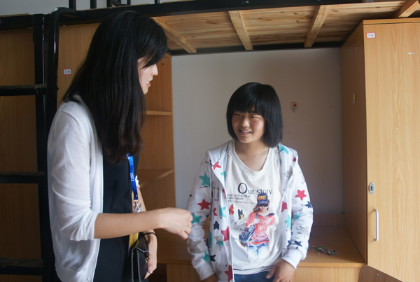张文亮年纪虽小,自理能力很强,记者刚进宿舍时,她正在将被角细细掖好,完成床铺的最后整理,而张爸爸则在一旁打下手。张爸爸说,原本因为路程太远不想让女儿小小年纪就离家千里上学,但张文亮十分坚持自己的选择。不过参观了安吉校区后,张爸爸也啧啧称赞,相信女儿的选择是正确的。一边的辅导员也请张爸爸放心,给小文亮留下了详细的联系方式,“有问题一定联系老师。”
