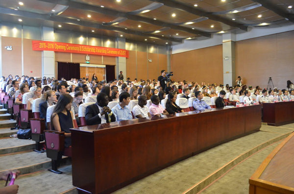 9月17日,2015级留学生新生开学典礼暨奖学金颁奖典礼举行。校长叶高翔、副校长郑友取出席。杭州市出入境管理局副局长李征平、学校相关职能部门和二级学院负责人,300多名留学生新生参加。副校长郑友取主持典礼。