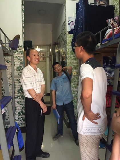 根据干部教师联系寝室制度,全体校领导联系学生公寓楼群,干部带头,鼓励所有任课教师联系学生寝室。联系寝室须定期走访,深入寝室谈话谈心工作,了解学生思想动态。据悉,为完善这一制度建设,校领导、中层干部等都将到联系公寓走访交流