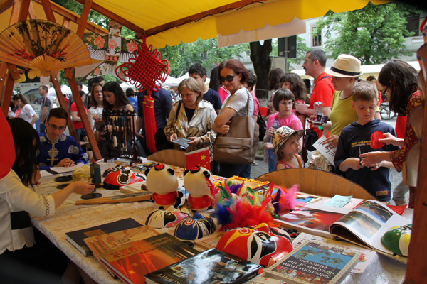 22日至23日,城市日多元文化展在巴比什波雅依大学主楼前广场举行,孔院布置的中国文化展位被安排在第一展位。法国、意大利、韩国、西班牙、土耳其等18个国家文化中心也参加展出。由中国结、红灯笼、国旗装饰的展台喜气洋洋,充满中国特色,吸引了众多观众前来参观。孔院为市民准备的中国书籍展、中国传统游戏展、剪纸、中国书法互动及汉语学习书签发放等项目受到欢迎。尤其是中国书法及剪纸的互动项目,两天活动中,孔院教师用书法的形式共为七百多位市民书写了他们的中国名字,前来参观的孩子们在孔院师生的指导下制作剪纸三百余幅,发放汉语学习书签一千余份。