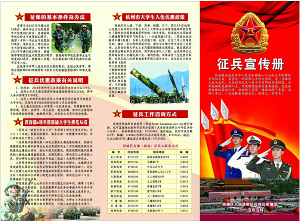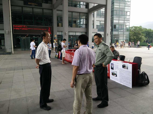 活动现场,工作人员通过展板和发放宣传单等多种形式广泛宣传国家关于大学生参军入伍的政策和意义,对2015年教育部出台的6项鼓励大学生参军新政策作了详细说明。校人武部还专程邀请5名刚从部队退役复学的学生来到现场,结合自身经历,介绍在部队的生活、学习等情况,现身说法引导大学生携笔从戎,报效祖国。