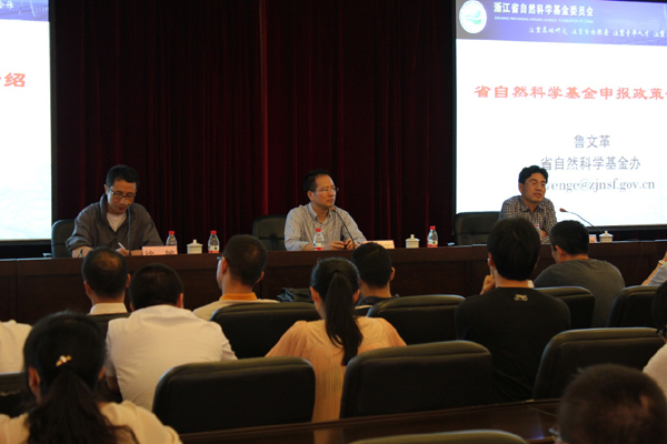 5月19日下午,省自然科学基金办主任鲁文革作客“习得论坛”,为广大教师讲解2016年省基金申报的新形势、新政策。论坛由副校长单胜道主持,近百名教师参加。