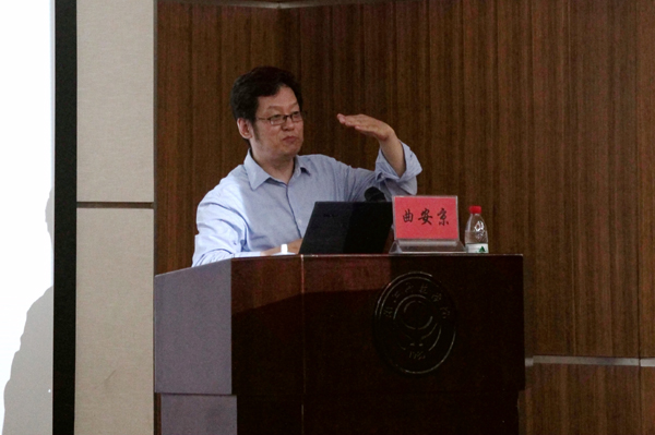 报告以托尔斯泰的名句“幸福的家庭都是相似的,不幸的家庭各有各的不幸”开篇,曲安京对“幸福的家庭”、“不幸的家庭”的组成元素进行分析,引入许多电影和文学作品为例,帮助学生更好地理解“鸽笼原理与模式”。他又阐述了“均值和方差”概念告诉学生,人生的价值,体现在方差的大小,我们在拉升均值的同时,鼓励方差的增大,这样才有创新、个性、多样性;与之相反,社会的稳定,体现在方差的控制,拉升均值的同时,要缩小方差的数值。曲安京说,如果说个体生活是布朗运动,无规则、永不停歇,那么个人在组织中就要遵从“公理化体系”,选择合适的公理,导出丰富的性质。他提醒学生,“不要畏惧犯错,不要轻言放弃,任何学科都有它存在的道理,与其问为什么会产生,倒不如去仔细研究、细细探索。”人一定要有理想,只要是有理想,人生就不会太失败。
