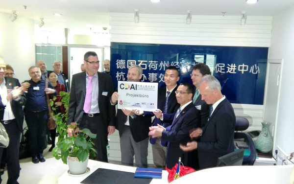 又讯 米乐官网中德工程师学院校企联络办公室揭牌仪式近日在石荷州经济技术促进中心驻杭州办事处举行。石荷州经济部长迈尔先生、石荷州经济技术促进中心总经理布薛与米乐官网副校长郑友取、吕贝克应用科技大学副校长利兹、西海岸应用科技大学胡斯曼共同为联络办揭牌。