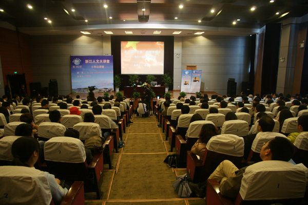 校党委书记王建华、校长叶高翔等校党政领导班子成员,中层干部、学生代表和来自校外的浙江人文大讲堂粉丝300余人聆听了报告。报告会由省社科联党组书记、副主席郑新浦主持。