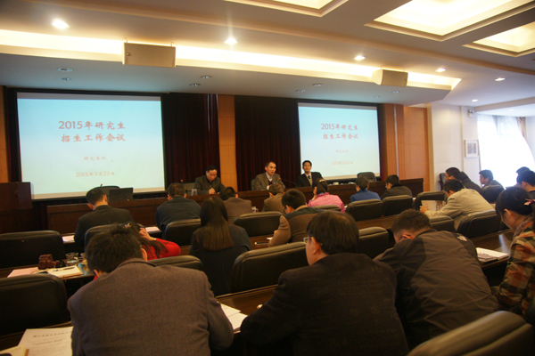 3月23日,学校召开硕士研究生招生工作会,部署2015年硕士研究生复试、调剂、录取各项工作。校长叶高翔到会并讲话。副校长赵东福、纪委书记李泽泉出席会议。相关部门和二级学院负责人,各学位点所在二级学院复试录取工作领导小组成员及复试相关工作人员参加会议。