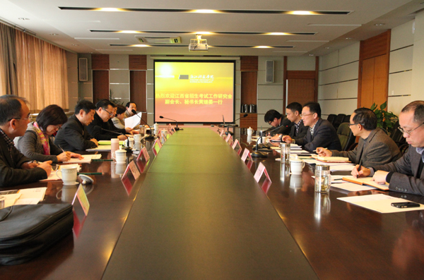 3月26日,江西省招生考试工作研究会副会长、秘书长黄继宴等来校考察交流。副校长冯军等接待了客人。浙江省考试院相关处室负责人陪同考察。