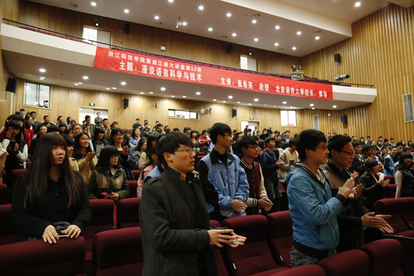 3月27日晚,黄浦江源大讲堂开出两讲。著名语言学家、北京大学博导陆俭明教授,北京语言大学校长、博导崔希亮教授分别在小和山校区和安吉校区为师生作精彩报告。校党委书记王建华、校纪委书记李泽泉分别主持报告会。两校区千余名师生聆听报告。