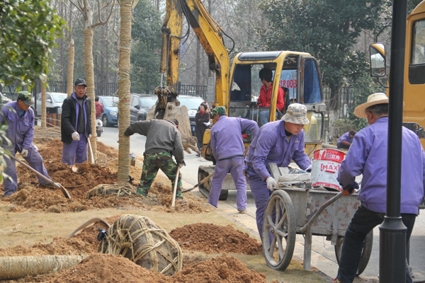 为做好春季植树造绿工作,后勤服务部和资产处利用寒假赴江苏等地园林基地精心挑选树种,后勤物业部员工在植树前挖坑、铺土做足准备。