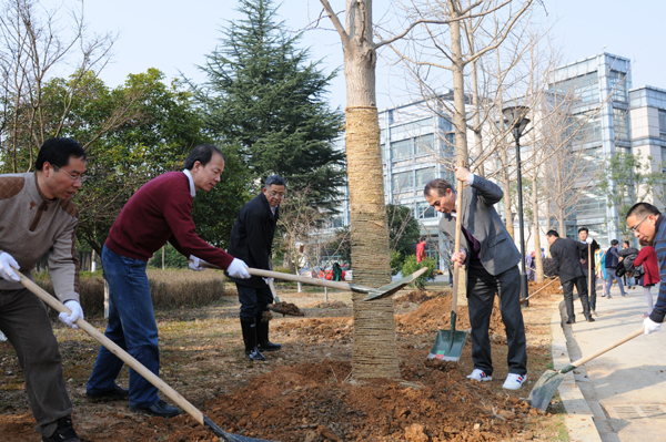 春回大地,万物复苏。3月12日,校党委书记王建华、校长叶高翔等校领导与机关党员干部、学院负责人、学生代表等,来到中和路及银杏东路空地植树。