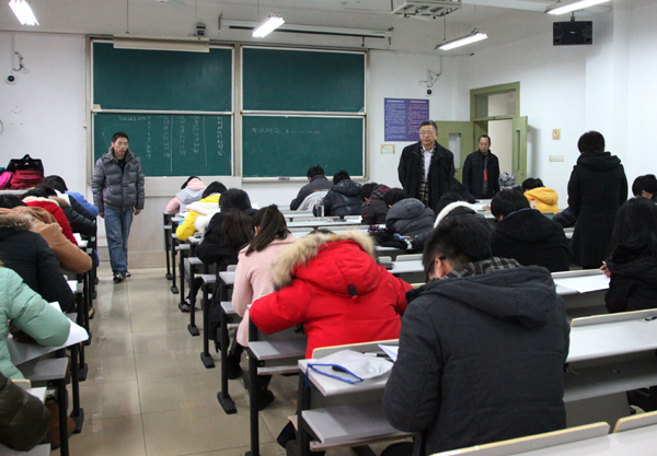 1月12日,小和山校区期末集中考试开始。当日,校党委书记王建华、校长叶高翔等校领导分别来到考场检查考风考纪,并向监考老师仔细了解了监考和考务情况。教务处等相关职部门和各二级学院也对考场进行认真巡视、检查。各考场监考教师按时到位,严格履行职责,考生严守纪律,沉着应考。