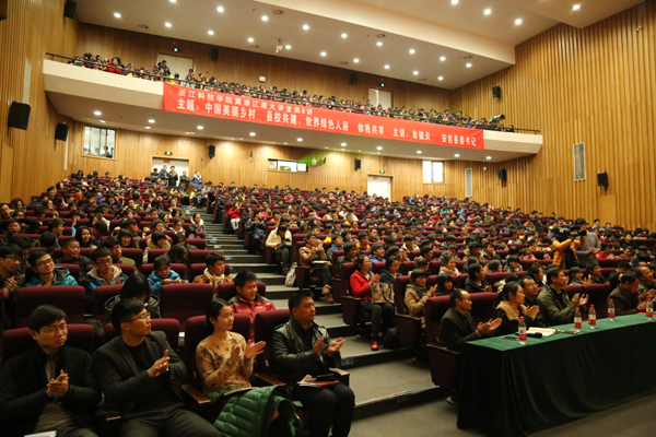 单锦炎自豪地说安吉是全国第一个生态县、第一个获得联合国人居奖的县,是美丽乡村的发源地。他简要介绍了安吉历史、人文、地理等基本情况,并用诙谐的语言、详实的案例阐释了安吉在八个领域的独特之美:安吉之美,“美”在生态环境、特色产业、城乡统筹、社会和谐、崇文重教、星光灿烂、政通人和、县校合作。选择浙江科技学院,就是选择了科技,选择了安吉加快发展的原动力,选择了安吉,也是选择了美丽,选择了对美好生活的向往。