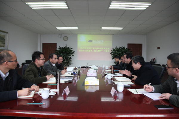 1月5日下午,浙江机电职业技术学院党委书记黄道平、院长管平、副院长张耀率该校相关职能部门负责人来校考察交流。校长叶高翔、副校长冯军等接待了客人。两校就相关合作办学事宜进行磋商,表示要加强联系,共谋发展。相关职能部门负责人参加工作交流。